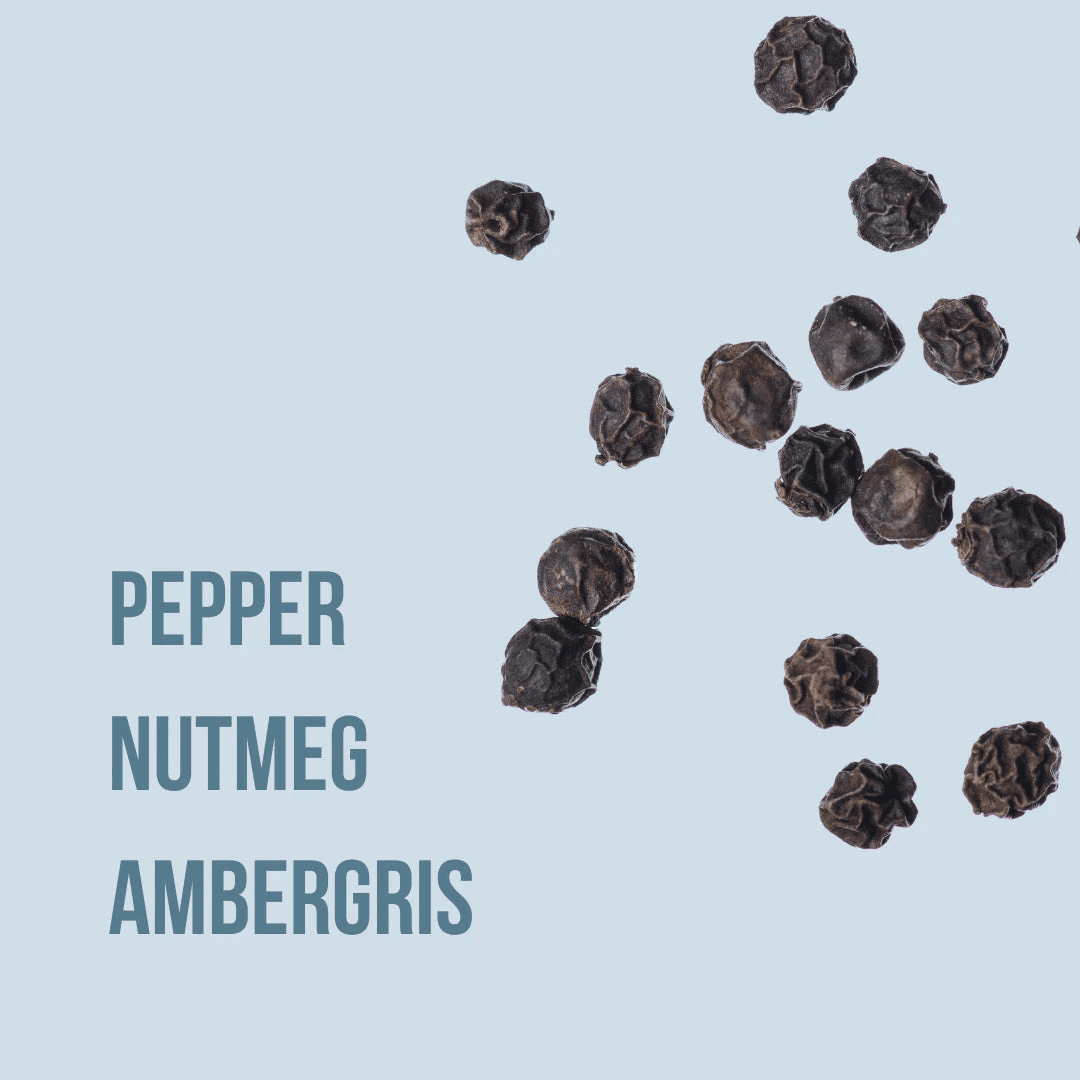 - Fragancia (Fragrance): Mezcla de aceites esenciales y compuestos aromáticos que aporta las notas clave de nuez moscada, especias y toques oceánicos.